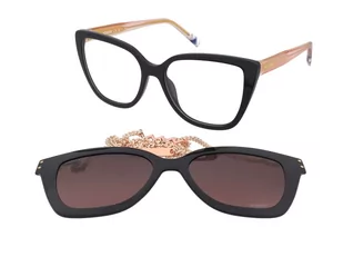 Oprawki posiadają eleganckie, lśniące wykończenie. Te oprawki są wyposażone w nakładkę przeciwsłoneczną na okulary. Nakładka umożliwia natychmiastową zmianę okularów w stylowe okulary przeciwsłoneczne w dowolnym momencie.