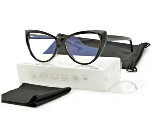 Okulary damskie kocie oczy z filtrem BLUE Control do pracy przy komputerze zerówki 25106 w kolorze czarnym w połysku ( Blue Light Filter zw. inaczej Blue Control )