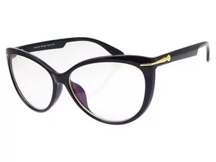 Damskie okulary do komputera zerówki marki PolarZONE, model 560K C. Czarna, błyszcząca oprawka w stylu Kocie Oczy. Rogi soczewek łączone z zausznikiem złotą, metalową wstawką, która daje okularom eleganckiego stylu. Przezroczysta soczewka z powłoką Blue Cut, która odfiltrowuje część światła niebieskiego. Soczewki zapewniają również pełną ochronę przed promieniowaniem UVA i UVB.