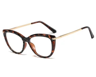 Okulary damskie kocie oczy z filtrem BLUE Control do pracy przy komputerze zerówki 2571-1 w kolorze panterka/szykret + złoty zausznik w połysku ( Blue Light Filter zw. inaczej Blue Control )