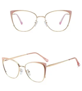 Okulary damskie kocie oczy z filtrem BLUE Control do pracy przy komputerze zerówki 2585-2 w kolorze różowo-złotym (mat + połysk) ( Blue Light Filter zw. inaczej Blue Control )