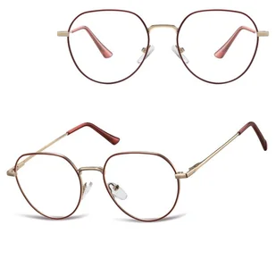 Okulary optyczne lenonki przeznaczone pod korekcję lub jako zerówki do uzupełniania codziennej stylizacji ze stali nierdzewnej Sunoptic M294C bordowo - złote w rozmiarze medium