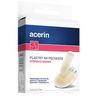 Produkt Acerin, plastry na pęcherze, 6 sztuk do kupienia w Gemini. Hydrokoloidowe plastry na pęcherze Acerin skutecznie zapobiegają ocieraniu się pęcherzy, łagodzą ból i przynoszą natychmiastową ulgę, zmniejszając uczucie dysk ...