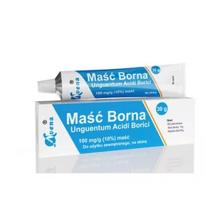 Maść o łagodnym działaniu antyseptycznym i przeciwzapalnym. Zawarty w maści kwas borny łatwo wchłania się z błon śluzowych i przez uszkodzoną skórę. Wydala się bardzo powoli z moczem. Może się kumulować, zwłaszcza u dzieci. Przeciwwskazania- Nadwrażliwość na składniki produktu. Nie stosować u dzieci do lat 11, nie stosować na rany otwarte, błony śluzowe, rozległe zmiany zapalne, zmiany sączące. Stosowanie innych leków - Interakcji z innymi lekami nie stwierdzono. Nie stosować leku podczas ciąży i karmienia piersią.