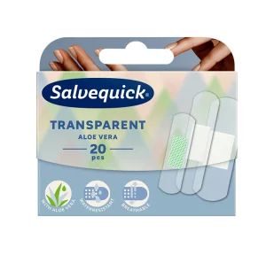 Wyjątkowo dyskretny plaster z przezroczystą folią i opatrunkiem w kolorze skóry. Posiada wszystkie właściwości plastrów wodoodpornych Salvequick Aqua Resist.