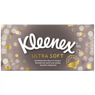 Chusteczki higieniczne KLEENEX Ultra Soft 64 szt Cechy produktu: Liczba warstw: 3 Rozmiar chusteczki : 20 * 20 cm Ilość w opakowaniu: 64 sztuki Ultra Soft to niezwykle miękkie i jedwabiste chusteczki higieniczne marki KLEENEX.