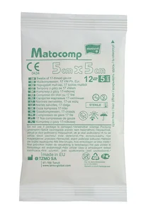 Duża chłonność. 5 indywidualnie zapakowanych kompresów w jednym opakowaniu. Słowa kluczowe: kompresy, gaziki, gaziki jałowe, MATOCOMP