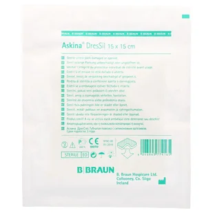 Opatrunek samoprzylepny Askina DresSil (B. Braun) Opatrunek samoprzylepny Askina DresSil to innowacyjny sposób leczenia ran. Opatrunek znakomitej jakości jest wyrobem sterylnym, wykonany został z miękkiej i delikatnej pianki. Opatrunek samoprzylepny Askina DresSil z jednej strony opatrunek został powleczony warstwą silikonową, dzięki której opatrunek doskonale przylega do ciała. Druga strona piankowego płata posiada poliuretanową warstwę, która umożliwia skórze oddychanie i odprowadzanie pary wodnej. Opatrunek jest przeznaczony do jednokrotnego użytku.