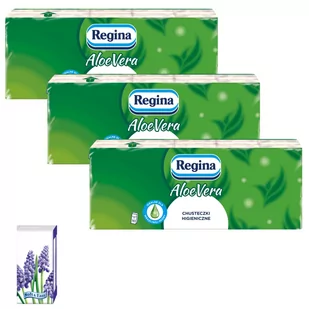 Regina chusteczki Aloe Vera 4 warstwy 30x9 sztuk+chusteczki Chusteczki higieniczne Regina wykonane z delikatnej celulozy, w praktycznym opakowaniu z higienicznym zamknięciem. Cały zestaw zawiera 10 paczek wysokiej jakości chusteczek. Chusteczki Regina cechują się wyjątkową miękkością, a przy tym dużą wytrzymałością. Regina to chusteczki dla każdego – białe, estetyczne, wytłaczane na brzegach, bezzapachowe, a zatem odpowiednie także dla najmłodszych. Postaw na higieniczność również podczas choroby czy kataru.