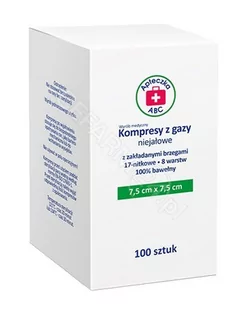 Apteczka ABC Kompresy z gazy niejałowe z zakładanymi brzegami 17N 8W 7,5cm x 7,5cm, 100 szt. -> Odbiór w Żabce!