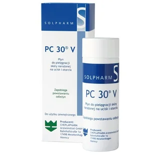 PC30V Liquidum 100mlPC30V Liquidum to preparat przeznaczony do profilaktyki odleżyn u osób długotrwale unieruchomionych, noszących protezy ortopedyczne, pasy przepuklinowe lub opatrunki gipsowe. Pomocny w przypadku już powstałych zmian na skórze oraz po oparzeniach I stopnia. wzmacnia skórę, która staje się odporniejsza na czynniki zewnętrzne oraz poprawia jej naturalne funkcje. ma właściwości antybakteryjne, nie zawiera środków konserwujących.