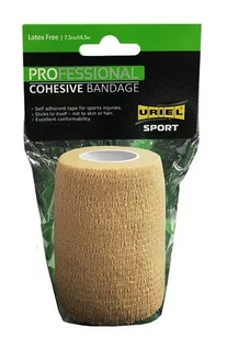 Uriel Bandaż Kohezyjny Cielisty 1 szt. Bandaż samoprzylepny stosowany podczas urazów sportowych w ramach terapii uciskowej. Bandaż jest kohezyjny i przykleja się sam do siebie, ale nie do skóry lub innych materiałów. Kolejne warstwy bandaża łączą się ze sobą na zasadzie rzepa, przez co nie wymaga on użycia zapinek lub innych elementów mocujących.
