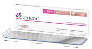 Sutricon to silikonowe plastry na blizny stanowiące innowacyjne rozwiązanie w profilaktyce oraz leczeniu blizn o różnym pochodzeniu. Plastry są wykonane z folii poliuretanowej oraz specjalnej warstwy żelu silikonowego - taki dobór składników zapewnia pełną biokompatybilność. Produkt skutecznie zmniejsza widoczność blizn, a także poprawia ich wygląd - w rezultacie blizny stają się jaśniejsze i wygładzone. Plastry można stosować na blizny pooperacyjne, poparzeniowe, pourazowe oraz inne. Zalecane są także w leczeniu bliznowców oraz tak zwanych blizn przerostowych. Silikonowe plastry Sutricon na blizny są rekomendowane przez Międzynarodowy Zespół Ekspertów ds. Leczenia Blizn. Można je stosować na wszystkie powierzchnie skóry. Są bezwonne i nie pozostawiają śladów na ubraniach. Zastosowanie: do stosowania: podczas leczenia różnych rodzajów blizn: pooperacyjnych, pooparzeniowych, po cesarskim cięciu, pourazowych i innych, w zapobieganiu nieprawidłowemu bliznowaceniu, w zmniejszaniu widoczności blizn świeżych i dojrzałych (powstałych nawet przed 10 laty), dla dzieci (już od 6 miesiąca życia) i dorosłych. Sposób użycia: można stosować od razu po zdjęciu szwów lub po zamknięciu rany. Przed użyciem należy dokładnie oczyścić i osuszyć bliznę. W celu dopasowania wielkości plastra do powierzchni blizny, możliwe jest jego docięcie w dowolny sposób. Plaster należy zmieniać średnio co 3- 5 dni, jednak najlepsze efekty uzyskuje się, wymieniając plaster co 24 godziny. Długość terapii jest indywidualna i zależy od wielu czynników m.in. wielkości i rodzaju blizny, wieku czy uwarunkowań genetycznych. Pierwsze efekty stosowania plastrów mogą być widoczne już po miesiącu, jednak pełna kuracja powinna trwać: minimum 3 miesiące w przypadku blizn świeżych; minimum 6 miesięcy w przypadku blizn starszych. Przy skłonnościach do nieprawidłowego bliznowacenia, zaleca się stosowanie plastrów przez cały okres przebudowy blizny, nawet do 1 roku. Składniki: żel silikonowy 200g/mkw, elastyczna siatka poliuretanowa o grubości zaledwie 50um. * Do wyczerpania zapasów wydawany jest produkt w starej szacie graficznej. Ważne wskazówki: Przechowywać w miejscu niedostępnym dla dzieci. Producent: Verco S.A. ul.