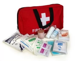 Apteczka z wyposażeniem: - 1 czerwona apteczka 20x30x8 cm - 2szt. bandaży elastycznych PBT 7,5cm x 4m - 2szt. bandaży 8cm x 10cm x 4m - 1szt. bandaż z krepy 6cm x 4 m - 1szt. bandaż trójkątny 96 cm x 96cm x 135 cm - 1szt. bandaż b