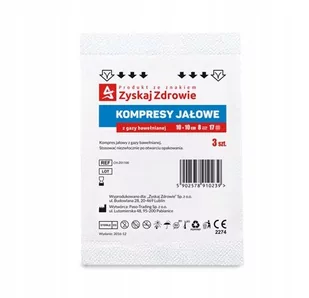 Zyskaj Zdrowie Kompresy gazowe, jałowe 17 nitkowe 10x10cm Jałowe kompresy z gazy bawełnianej o wymiarach 10 x 10 cm. Białe, miękkie, nieco grubsze, 8-warstwowe. Bardzo chłonne i przepuszczalne dla powietrza. Pakowane po 3 sztuki. Wskazania Opatrywanie ran przy zabiegach stacjonarnych i ambulatoryjnych.