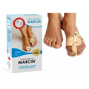 Aparat korekcyjny MARCIN pomaga w łagodzeniu bólu i zatrzymaniu rozwoju wady. Może być używany zarówno w trakcie snu jak i wypoczynku. Nie należy w nim chodzić. Aparat ten, w przeciwieństwie do aparatów, w których można chodzić, umożliwia silniejsze odwodzenie palucha, przez co jego skuteczność jest znacznie większa. W aparacie zastosowano elementy z naturalnej skóry, dzięki czemu aparat jest trwały i bezpieczny.