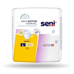 Majtki chłonne SENI Active Normal Large 30 szt. Opis: Jednorazowe majtki chłonne Seni Active Normal (chłonność 5,5/7 kropelek) to idealne rozwiązanie dla osób ze średnim nietrzymaniem moczu. To pierwszy z trzech poziomów chłonności majtek chłonnych Seni Active. Majtki chłonne Seni Active Normal polecane są osobom, które potrzebują pewniejszego zabezpieczenia niż wkładki urologiczne. Łatwość użycia – majtki chłonne zakłada się tak samo jak zwykłą bieliznę.