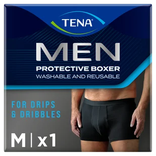 Produkt Tena Men Protective Boxer, wielorazowe bokserki na lekkie nietrzymanie moczu, czarne, rozmiar M, 1 sztuka do kupienia w Gemini. Wielorazowe bokserki chłonne w rozmiarze M marki Tena® Men Protective to wygodna, ...