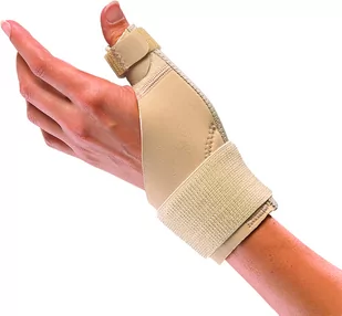 wbudowane, formowalne metalowe wzmocnienie dla zapewnienia maximum ochrony wspiera i ogranicza możliwość ruchu stawu, nie blokując przy tym możliwości ruchu samego palca szeroki pasek na wysokości nadgarstka zapewnia jego sztywne zapięcie
