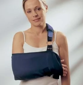Temblak ramieniowy wykonany z bawełnianego materiału , z ujęciem kciuka. Dzięki uniwersalnemu dopasowaniu i łatwemu systemowi zakładania nie sprawia trudności w samodzielnym ubieraniu przez pacjenta.