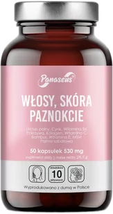 Panaseus Włosy skóra paznokcie 50 kapsułek Zestaw 10 naturalnych składników aktywnychWsparcie włosów, skóry i paznokciZadbaj o piękno od wewnątrzŹródło antyoksydantówSynergiczne działanieŁamliwe włosy, zmęczona skóra i słabe paznokcie to nie tylko objawy starzenia. Zmiany, które widzisz w lustrze oprócz wieku, odzwierciedlają to, co dzieje się w Twoim ciele. Twoja skóraKiedy jesteśmy młodzi, większość z nas cieszy się zdrową i elastyczną skórą, która szybko goi się w przypadku uszkodzeń. W późniejszym okresie życia zaczynamy dostrzegać pewne oznaki starzenia, takie jak zmarszczki, wiotczenie i rosnącą liczbę zmian pigmentacji spowodowanej światłem słonecznym. Zmiany zachodzą także pod powierzchnią, gdzie kolagen i elastyczne włókna, które pozwalają naszej skórze rozciągać się, ulegają stopniowej degradacji.