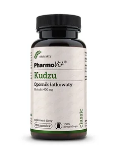 Kudzu Opornik łatkowaty ekstrakt 400 mg 90 kapsułek PharmoVit Kudzu, czyli opornik łatkowaty to znana i stosowana roślina już od czasów starożytnych na dalekim wschodzie. Kudzu może wpływać na obniżenie ciśnienia krwi. Ma również zbawienny wpływ na układ pokarmowy usprawniając procesy trawienne. Kudzu stosowane jest również przy problemach z uzależnieniami, takimi jak uzależnienie od alkoholu. Związane to jest z zawartością w nich związków flawonoidowych: