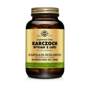 Cynaryna może działać wspomagająco na obniżenie stężenie trójglicerydów w organizmie. Karczoch wspiera również regenerację wątroby. Preparat firmy Solgar w każdej kapsułce zawiera 300 mg wysokiej jakości ekstraktu (4:1) uzyskanego z 1200 mg dużych, zielonych, liści. Zawartość specjalnej szklanej buteleczki, która chroni cenne składniki. Szanując potrzeby odbiorców Solgar dochowuje najwyższej staranności, by dostarczać wysokiej jakości produkty spełniające wymagania wegan i wegetarian.