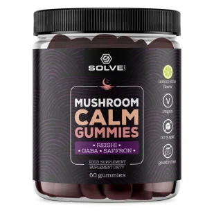 Mushroom Calm Gummies od Solve Labs to wegańskie, bezcukrowe żelki o wyrazistym cytrynowo-limonkowym smaku, które łączą w sobie moc natury i nowoczesnej formuły, by przynieść Ci ukojenie i wsparcie emocjonalne.