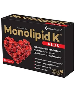 Monolipid K Plus to najwyższej jakości innowacyjny i naturalny preparat zawierający w jednej kapsułce unikalną kombinację ekstraktu z owoców bergamoty (Citrus Bergamia Risso) standaryzowanego na 40 % polifenoli BPF (Bergamot-derived Polyphenolic Fraction), ekstraktu z czosnku standaryzowanego na 1 % Allicyn (w tym tiosulfinaty, allina i gammaglutamylocysteiny) oraz naturalnego koenzymu Q10 w postaci wysoko przyswajalnego ubichinonu oraz aktywny ekstrakt z czerwonych drożdży ryżu standaryzowany na zawartość Monakoliny K, która pomaga w utrzymaniu prawidłowego cholesterolu.