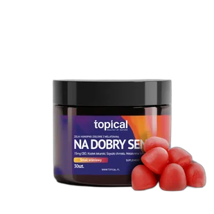 Marzysz o spokojnym i regenerującym śnie, który pozwoli Ci wstać pełnym energii? Żelki konopne z melatoniną DOBRY SEN FORTE to suplement diety stworzony specjalnie dla osób, które pragną skrócić czas zasypiania i poprawić jakość swojego nocnego odpoczynku. Produkt łączy w sobie melatoninę oraz ekstrakty z trzech starannie dobranych ziół: kozłka lekarskiego, chmielu i konopi siewnych, tworząc skuteczną formułę o potwierdzonym działaniu.