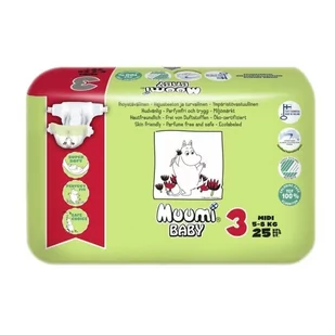 Największą zaletą pieluszek Muumi Baby jest ich łagodność dla skóry dziecka. Są hipoalergiczne, nie zawierają żadnych chemikaliów, niepotrzebnych substancji zapachowych czy mleczka. Wyprodukowane wyłącznie z certyfikowanej celulozy fińskiej Bio, bielonej kwaskiem. Właściwości: Ultra miękkie, dobrze się dopasowują Bezpiecznie dla dzieci Delikatne dla skóry Cienkie pieluszki, potrójna warstwa (pieluszki dla niemowląt i najmniejsze rozmiary mają warstwę podwójną) Kompaktowe opakowanie Wysokiej jakości materiał i ciągła funkcjonalność TCF - łagodne dla środowiska naturalnego z oznaczeniem EKO Nordic Swan Celuloza fińska - w 100% ulega biodegradacji (z certyfikowanych lasów skandynawskich).