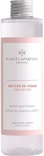 liście winorośli, zielone jabłko Nuta głębi: drewno oliwne Plantes & Parfums Provence to firma umiejscowiona w Sablet w sercu Prowansji która od 30 lat produkuje najwyższej jakości zapachy do wnętrz. Wszystkie produkty są wytwarzane lokalnie z poszanowaniem tradycji oraz środowiska naturalnego. Produkty marki Plantes & Parfums Provence są wytwarzane rzemieślniczymi metodami, charakteryzuje je: są produkowane ręcznie w Prowansji, zawierają ekstrakty perfum z Grasse, oparte na naturalnych składnikach, gama produktów zawiera dyfuzory zapachowe z patyczkami, naturalne świece zapachowe, spray'e do wnętrz, suszoną lawendę oraz wiele innych.