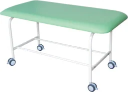LM-03aK Standard mobilna kozetka lekarska 1-częściowa na kołach krótka bez zagłówka Mobilna, krótka kozetka lekarska o stałej wysokości 55 cm na stabilnym stelażu wykonanym z profili stalowych o przekroju rurki, lakierowanym proszkowo lakierem odpornym na promieniowanie UV i zarysowania. Kolor stelaża do wybory z palety producenta. Kozetka wyposażona jest w 1-częściowe leże bez sekcji zagłówka. Bezszwowa i zmywalna tapicerka z atestowanego materiału skóropodobnego lub winylowego w wielu kolorach do wyboru. Wkład leża wykonany z elastycznej, średnio twardej pianki poliuretanowej.