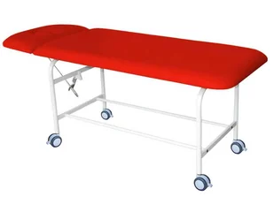 Shipping to countries: AT ; CZ ; EE ; SK ; LT ; LV ; Read more: Product shipping rules for European countries and product page translations LM-03K Standard mobilna kozetka lekarska 2-częściowa na kołach metalowa z zagłówkiem regulowanym w zakresie +/- Mobilna kozetka lekarska o stałej wysokości 55 cm na stabilnym stelażu wykonanym z profili stalowych lakierowanych proszkowo lakierem odpornym na promieniowanie UV i zarysowania. Kolor stelaża do wybory z palety producenta. Kozetka lekarska wyposażona jest w 2-częściowe leże z regulowanym zagłówkiem w zakresie +/- przy pomocy mechanizmu mimośrodowego.