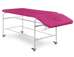 Norma-DK mobilna kozetka lekarska 2-częściowa na kółkach z regulowanym zagłówkiem Kozetka lekarska o stałej wysokości 55 cm wykonana na stabilnej konstrukcji z lakierowanych proszkowo profili stalowych. Kozetka posiada 2-częściowe leże wypełnione elastyczną pianka PU z regulowanym w zakresie +/- zagłówkiem wyposażonym w otwór do oddychania z zatyczką. Leże pokryte jest bezszwową tapicerką z atestowanego i zmywalnego materiału skóropodobnego (paleta Standard Line) lub winylowego (paleta Exclusive Line). Standardowo kozetka wyposażona jest w 4 kółka kierunkowe (skrętne) o średnicy 50 mm z hamulcem (blokadą jazdy) nadające kozetce mobilności w obrębie gabinetu i placówki. W opcjach wyposażenia dodatkowego kozetkę za dopłatą można doposażyć w uchwyt na podkłady higieniczne w rolce o szerokości 70 cm i w praktyczną półkę pod leżem na akcesoria oraz w odboje ochronne na nogach kozetki.