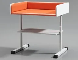 SBN-P wolnostojące stanowisko z półką dolną do badania i pielęgnacji niemowląt Stanowisko do badania i przewijania niemowląt z tapicerowanym blatem zabiegowym i półką dolną pod blatem, wykonane w typie klasycznego przewijaka na konstrukcji z profili stalowych lakierowanych proszkowo zapewniającej stabilność podczas badania i zabiegów pielęgnacyjnych. Stanowisko wyposażone jest w wykonany z płyty meblowej blat zabiegowy o wymiarach zewnętrznych 96x75 cm (szerokość x głębokość) z doklejonymi od wewnątrz elementami chroniącymi niemowlę przez urazami (materacyk i boki), wykonanymi z pianki PU powleczonej atestowanym materiałem skóropodobnym poddającym się dezynfekcji. Wysokość od podłoża do blatu zabiegowego wynosi 79 cm przy całkowitej wysokości stanowiska 99 cm. Na wyposażeniu stanowiska znajduje praktyczna półka na akcesoria lub kosmetyki do pielęgnacji niemowlęcia. Półka o wymiarach 69x55 cm (szerokość x głębokość) wykonana jest z płyty meblowej.