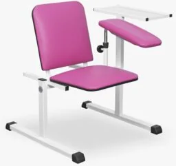 Charakterystyka i zalety stanowiska ST-01 do pobierania krwi i iniekcji stabilna konstrukcja zapewniająca bezpieczne wykonywanie zabiegów odpowiedni mebel medyczny do iniekcji i szczepień, pobierania krwi oraz wymazów, wahadłowe siedzisko pozwalające na przeprowadzanie zabiegów na lewym lub prawym przedramieniu pacjenta tapicerowane siedzisko usytuowane na wysokości 47 cm od podłoża tapicerowane oparcie pleców tapicerowany podłokietnik z regulacją wysokości i obrotem o 180 atestowana tapicerka dostępna w wielu kolorach, zmywalna i poddająca się dezynfekcji elastyczna pianka PU wypełniająca elementy tapicerowane zaokrąglone narożniki elementów tapicerowanych praktyczny blat zabiegowy przy podłokietniku maksymalne obciążenie do 120 kg certyfikowany wyrób medyczny darmowa dostawa na terenie Polski Wyrób medyczny zgodnie z wymaganiami zasadniczymi dla wyrobów medycznych w rozumieniu dyrektywy MDD 93/42/EEC oraz krajowej ustawy o wyrobach medycznych. Tapicerka stanowiska do pobierania krwi - kolorystyka i właściwości Tapicerka wykonana jest ze skóropodobnego materiału obiciowego produkowanego przez Sanwil Polska pod nazwą handlową Skaden B-353 dedykowanego do wyposażenia medycznego. Powlekany PCV o podwyższonej odporności na olejki do masażu, oleje, alkohol, płyny ustrojowe (krew, pot, mocz) oraz promieniowanie UV i zadrapania. Zgodny z wymaganiami humanoekologicznymi Oeko-Tex Standard 100 oraz z obowiązującymi w UE regulacjami prawnymi w zakresie stosowania barwników azowych. Jest materiałem uniepalnionym.