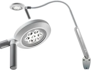 Visiano 10-1. P. S10S LED bezcieniowa lampa zabiegowo-diagnostyczna 13W z uchwytem ściennym Ścienna lampa zabiegowo-diagnostyczna do oświetlania niewielkiego pola zabiegowego i diagnostyki medycznej. Bezcieniowa trójsferycznie zamontowane diody LED w głowicy świetlnej powodują efekt bezcieniowości w obrębie plamki świetlnej. Źródłem światła w lampie Visiano 10-1. P. S10 jest 7 diod LED o mocy 1.