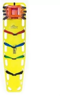 Mocowanie pasów min. 5 na stronę oraz możliwość przepinania pasów bez poruszania pacjenta (poszkodowanego) 6. Zestaw klocków- poduszek do unieruchomienia głowy i kręgosłupa szyjnego z możliwość zmiany punktu pracy pasów mocujących, z możliwość obserwacji uszu poszkodowanego oraz wpływu zamocowania zestawu na możliwości transportowe noszy 7. Ciężar noszy max. 10 kg nośność min.