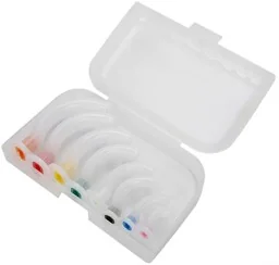 Zestaw 8 sztuk rurek ustno-gardłowych typu Guedel a służących udrożnianiu górnych dróg oddechowych. Produkt sterylny, wykonany z przezroczystego PVC umożliwiające stwierdzenie ciała obcego w świetle rurki. Komplet oferowany w plastikowym pudełku . Zastosowanie wyrób stosowany podczas prowadzenia wentylacji płuc, umożliwia udrożnienie górnych dróg oddechowych, zapewnia ratownikowi komfort prowadzenia zabiegów oraz podnosi skuteczność prowadzonej akcji udzielania pomocy, ułatwia stabilizację rurki intubacyjnej. Rozmiary w zestawie 5 pomarańczowy: