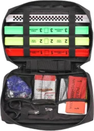 Wyposażona w system MOLLE , umożliwiający przypięcie torby do innych produktów, co zwiększa jej funkcjonalność. Możliwość noszenia w ręku za pomocą wygodnego uchwytu lub na ramieniu dzięki regulowanemu paskowi. Szybki dostęp do zawartości po otwarciu zamka błyskawicznego. Wyposażenie zestawu TRIAGE: Opaski odblaskowe do segregacji poszkodowanych 36 sztuk w czterech kolorach (po 9 sztuk każdego koloru), ułatwiające oznaczanie stanu poszkodowanych.