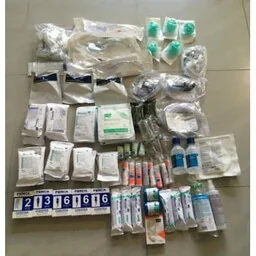 Przewody tlenowe Przewód tlenowy 10m - 1 szt. Opatrunki Opatrunek osobisty W / A (mały) - 2 szt. Kompres gazowy, jałowy 9cm x 9cm - 10 szt. Gaza opatrunkowa jałowa 1m - 5 szt. Gaza opatrunkowa jałowa 1/2m - 5 szt.