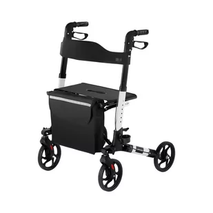 Czterokołowy balkonik do chodzenia marki Uniprodo powstał z myślą o ułatwieniu poruszania się osobom starszym lub mającym problemy z samodzielnym przemieszczaniem się. Wózek został wykonany z lekkiego aluminium, waży zaledwie 7,7 kg. Siedzisko ma wymiary 25 x 47 cm. Ergonomiczne rączki dają pewne oparcie dla rąk. Dźwignie służą do uruchamiania oraz zwalniania hamulca. Ponadto wysokość można regulować w 6- stopniowej skali aby dopasować wózek do wzrostu użytkownika. Balkonik posiada także zdejmowaną torbę na zakupy. Duże kółka wykonane zostały z TPR, są ciche, mają dobrą przyczepność oraz nie zostawiają śladów na podłodze. Dwustopniowy mechanizm służy do automatycznego składania balkonika.