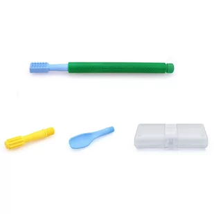 Carry Kit Z-Vibe to zestaw do rehabilitacji aparatu mowy. W skład zestawu wchodzą: wibrator logopedyczny "Z-vibe" oraz 3 wymienne nasadki masujące. W standardowym zestawie znajdują się nasadki: "Probe Tip - Miękka" "Preefer Tip - Miękka" "Spoon Tip - Miękka Gładka" Całość zapakowana jest w estetyczny piórnik z tworzywa sztucznego.