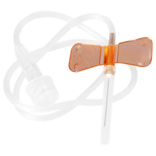 Kaniula dożylna typu motylek (ChiraFlex) Kaniula dożylna typu motylek to specjalistyczny asortyment niezbędny w opiece medycznej różnych specjalności. Profesjonalna kaniula dożylna typu motylek jest zbudowana z wysokiej jakości igły, drenu z końcówką luer lock oraz z parą elastycznych skrzydełek ze sztucznego tworzywa. Charakterystyczna budowa kaniuli dożylnej typu motylek umożliwia bezpieczne wprowadzenie igły. Giętkie skrzydełka pozwalają na przytwierdzenie igły umieszczonej w żyle za pomocą przylepca medycznego albo plastra. Taki sposób zamocowania igły redukuje ryzyko uszkodzenia ścian żyły podczas podawania leków czy wlewów.