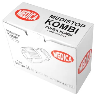 Jest nietoksyczny i niepirogenny. Opakowanie zostało wyposażone w duży, dobrze widoczny znacznik otwarcia. Umożliwia to szybkie wydobycie przedmiotu i przeprowadzenie czynności w możliwie najkrótszym czasie. Sposób pakowania korków luer lock Medistop Kombi pozwala na aseptyczne wyjęcie produktu z opakowania. Za pomocą korka Medistop Kombi jest możliwe szczelne zamknięcie światła strzykawki.