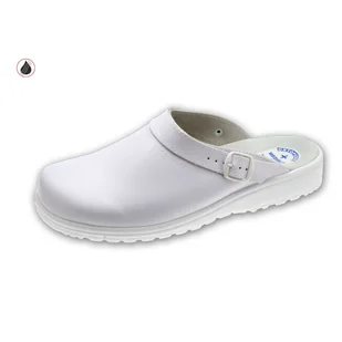 Obuwie damskie i męskie na spodach przeciwpoślizgowych z profilem ortopedycznym, cholewką i wyściółką skórzaną.