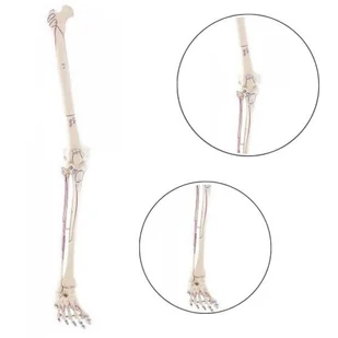 Naturalnej wielkości model anatomiczny przedstawiający szkielet kończyny dolnej z przyczepami mięśni uda, poudzia i stopy. Idealny dla lekarzy i fizjoterapeutów. Model sprawdzi się idealnie jako element wyposażenia pracowni anatomicznych i przyrodniczych. Model posiada pełną fizjologiczną ruchomość kończyn dolnych. Model kończyny został zaprojektowany, przez znanego niemieckiego producenta Erler Zimmer, w oparciu o budowę anatomiczną dorosłego mężczyzny o przeciętnym wzroście.