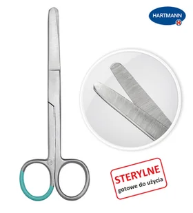 Nożyczki chirurgiczne sterylne proste 14,5 cm tępo/tępe (Hartmann) Nożyczki chirurgiczne znanego producenta Hartmann to narzędzie doskonałej jakości. Nożyczki chirurgiczne o długości 14,5 cm to narzędzie o szerokim zastosowaniu. Rękojeść nożyczek wyróżniona jest kolorowym elementem dla ułatwienia identyfikacji nożyczek sterylnych od tych, które wymagają sterylizacji. Sterylne nożyczki chirurgiczne są stosowane w celu rozcinania materiałów opatrunkowych. Znakomicie zaostrzone części pracujące bez trudu przecinają nici.