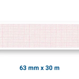 posiada nadruk w postaci czerwonej kratki, wyrób medyczny klasy I posiadający funkcję pomiarową wymiary: 63 mm x 30 m Papier rejestracyjny EKG FUKUDA H01/Densi do aparatu EKG Fukuda o wymiarach 63 mm x 30 m.